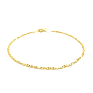 14k Tri Color Gold Anklet with Textured Beads