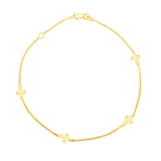 14k Three-Toned Yellow, White, and Rose Gold Anklet with Textured Ovals