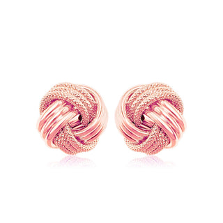 14k Rose Gold Love Knot with Ridge Texture Earrings