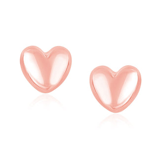 14K Rose Gold Puffed Heart Shape Shiny Earrings