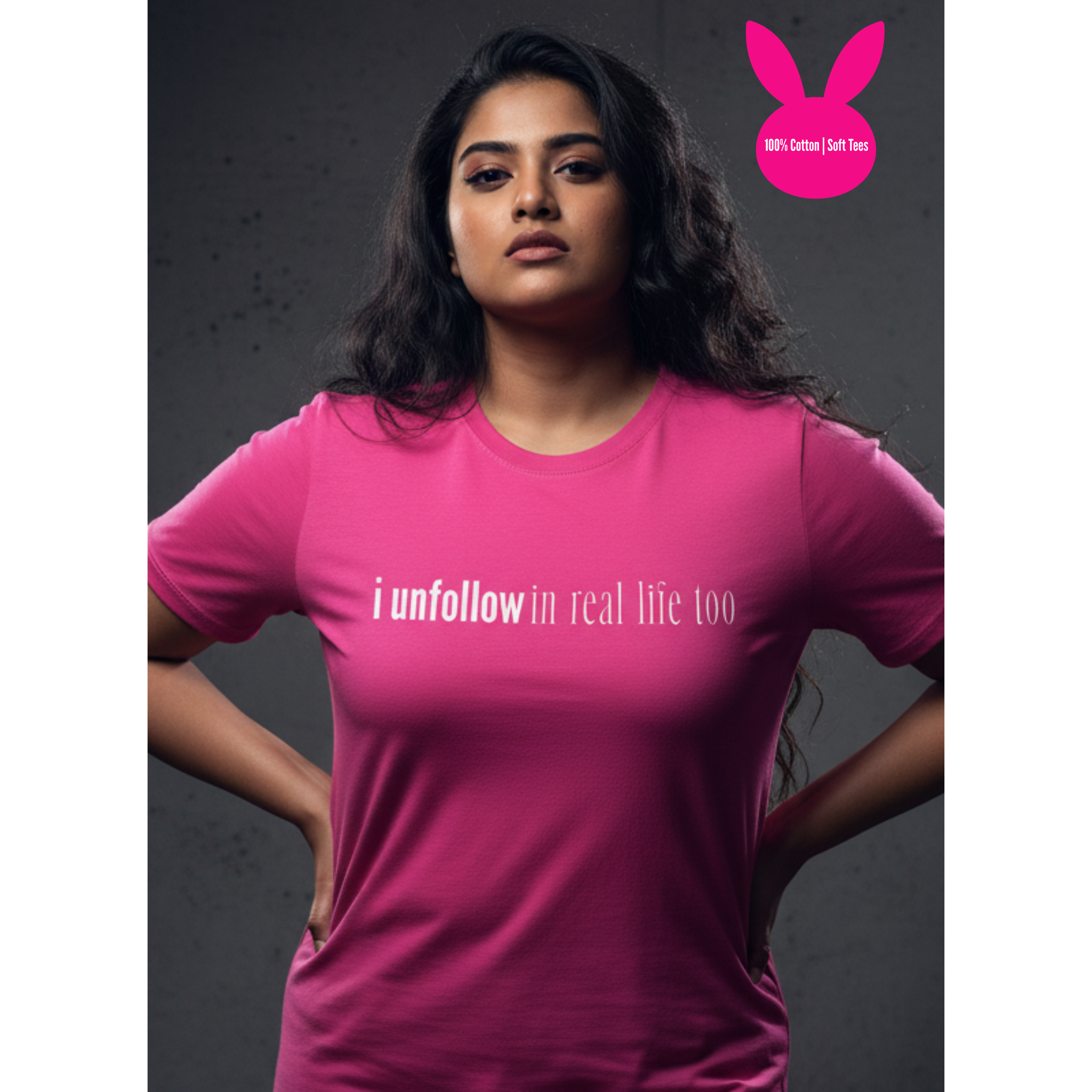 I Unfollow in Real Life Too Pink T-Shirt (100% Cotton | Soft Tees)