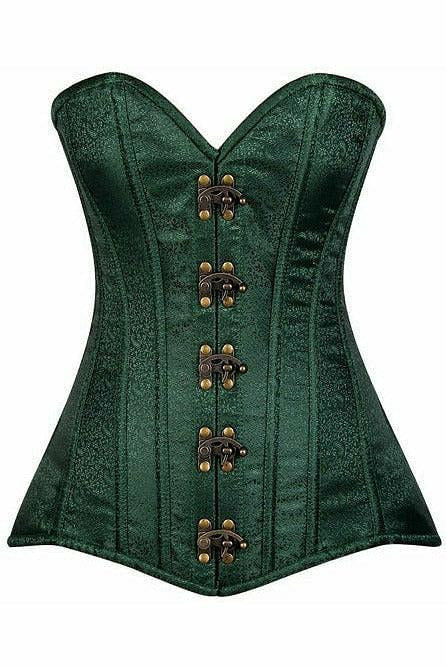 Top Drawer Dark Green Brocade Steel Boned Corset w/Clasp Closure