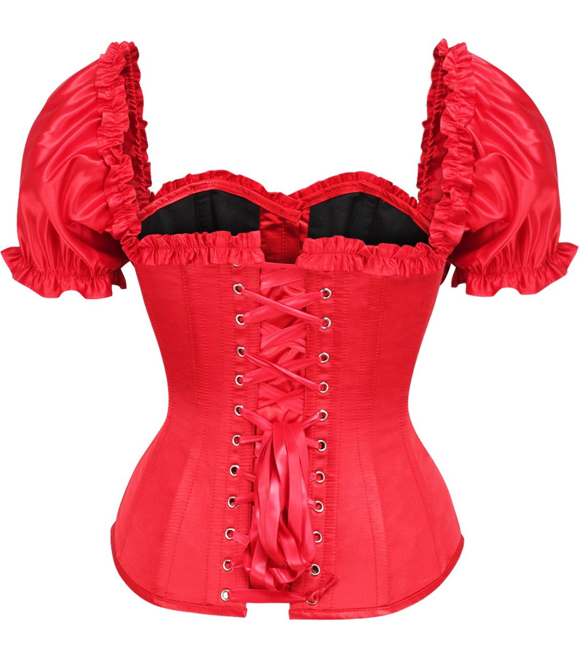 Top Drawer Steel Boned Red Satin Overbust Corset w/Sleeves