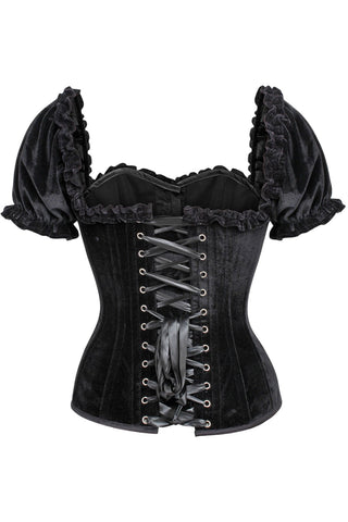 Top Drawer Steel Boned Black Velvet Overbust Corset w/Sleeves