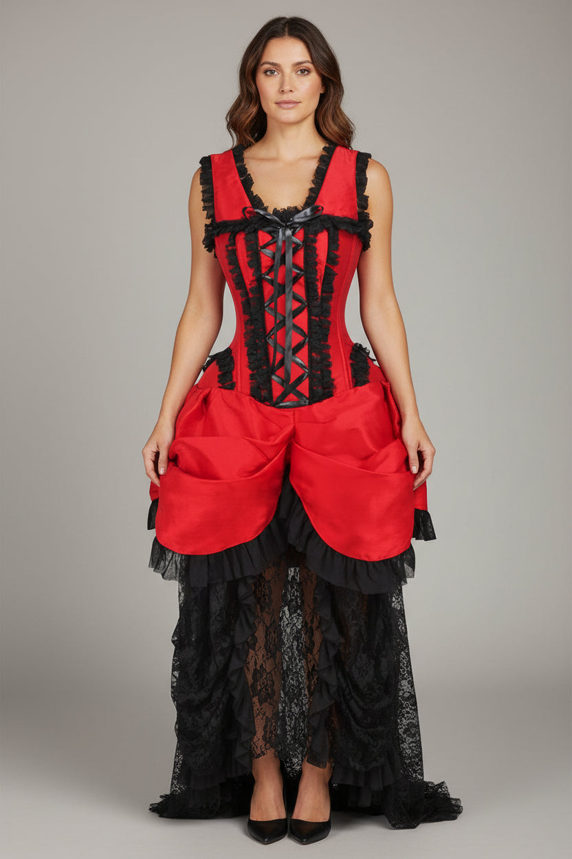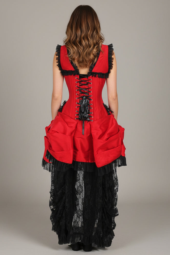 Top Drawer Steel Boned Red/Black Lace Victorian Bustle Corset Dress