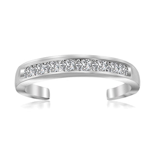 Sterling Silver Rhodium Finished Toe Ring with White Tone Cubic Zirconia Accents