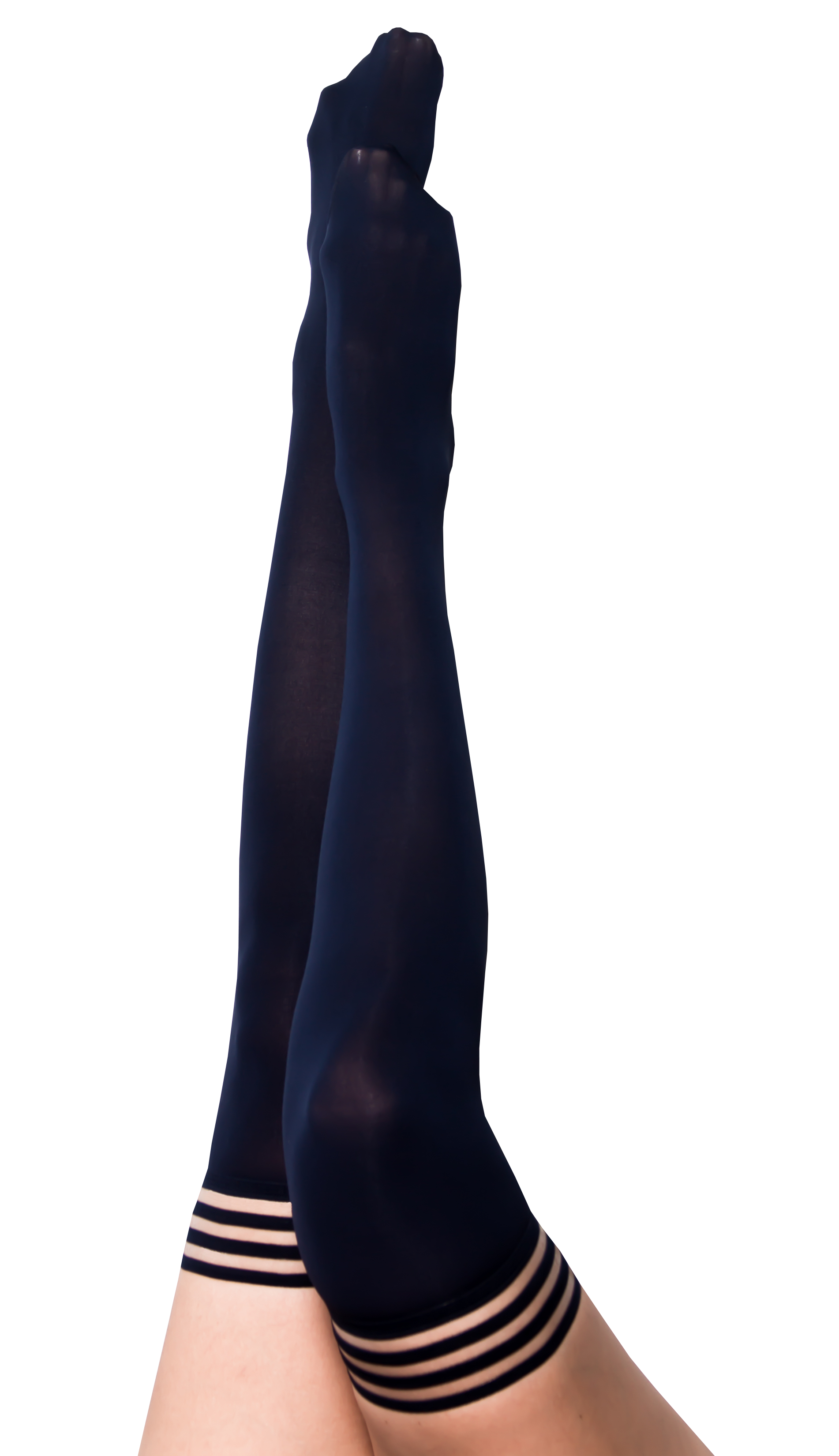 These navy opaque thigh-high tights are the cat's meow for any business outfit or vintage pin-up WW2 Ball costume! For those who love navy blue, these are for you! The Selma's are a great alternative to everyday black, and the perfect way to kick a casual outfit up a notch. Kix'ies thigh-highs are designed for all-day wear, with a no-slip-grip. We offer Petite to Plus Size Stockings and are the #1 thigh-highs that actually stay up!