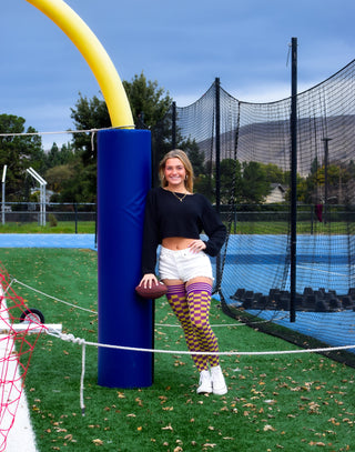Lindsay: Foot Loose & Fancy Free, Footless Black Stripe Fishnet Thigh Highs. Petite to Plus Size