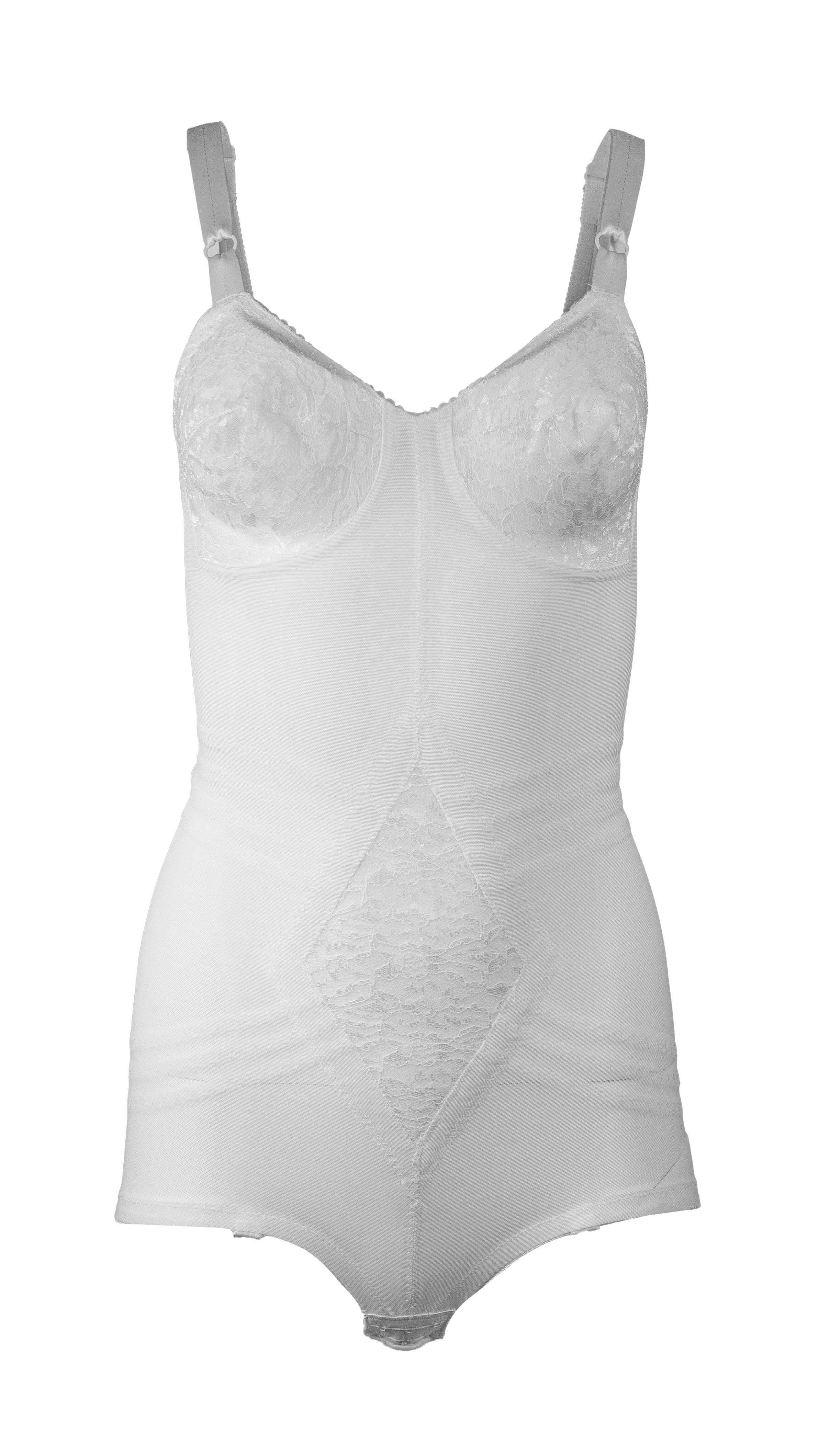 This extra firm contour body shaper features our exclusive contour bands, lined lace cups and flat sewn seems. It is made of firm control Shapette® Power Net fabric made of 77% nylon, 23% Invista® Lycra® to stretch 2 ways.