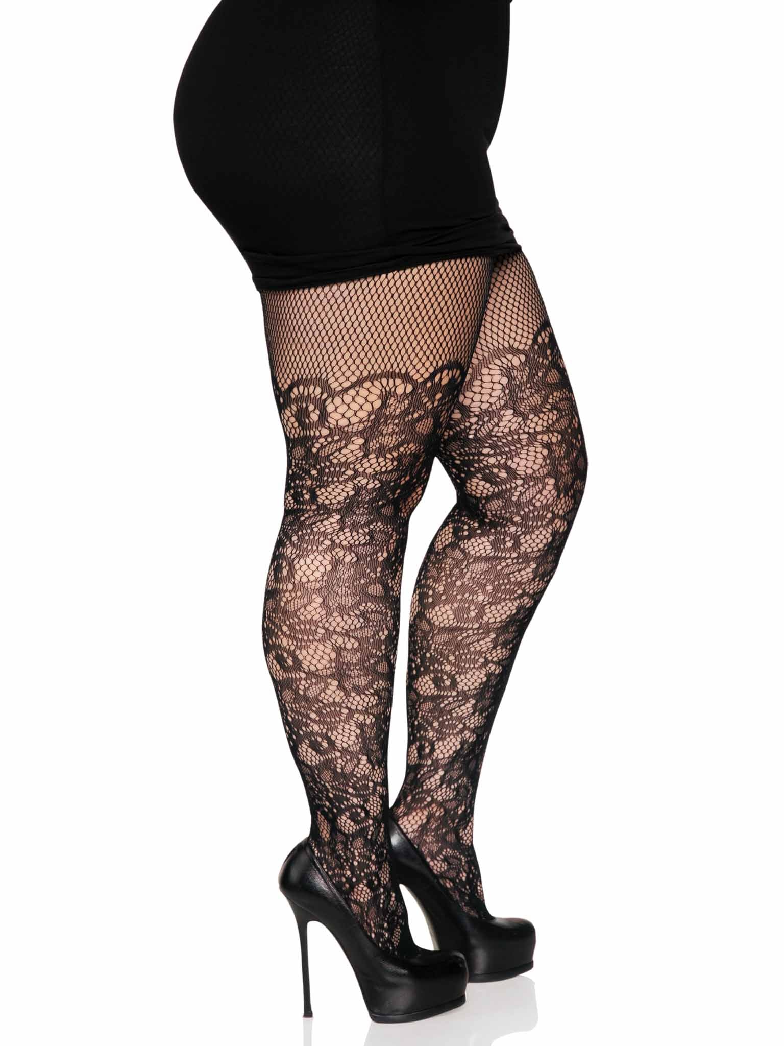 Dress up your irresistably sexy self in the Drew Plus Size Floral Vine Fishnet Tights by Leg Avenue. These fishnet tights feature beautiful floral lace vines, perfect to pair with your favorite sexy lingerie for a steamy night in the bedroom or a daring night out on the town.