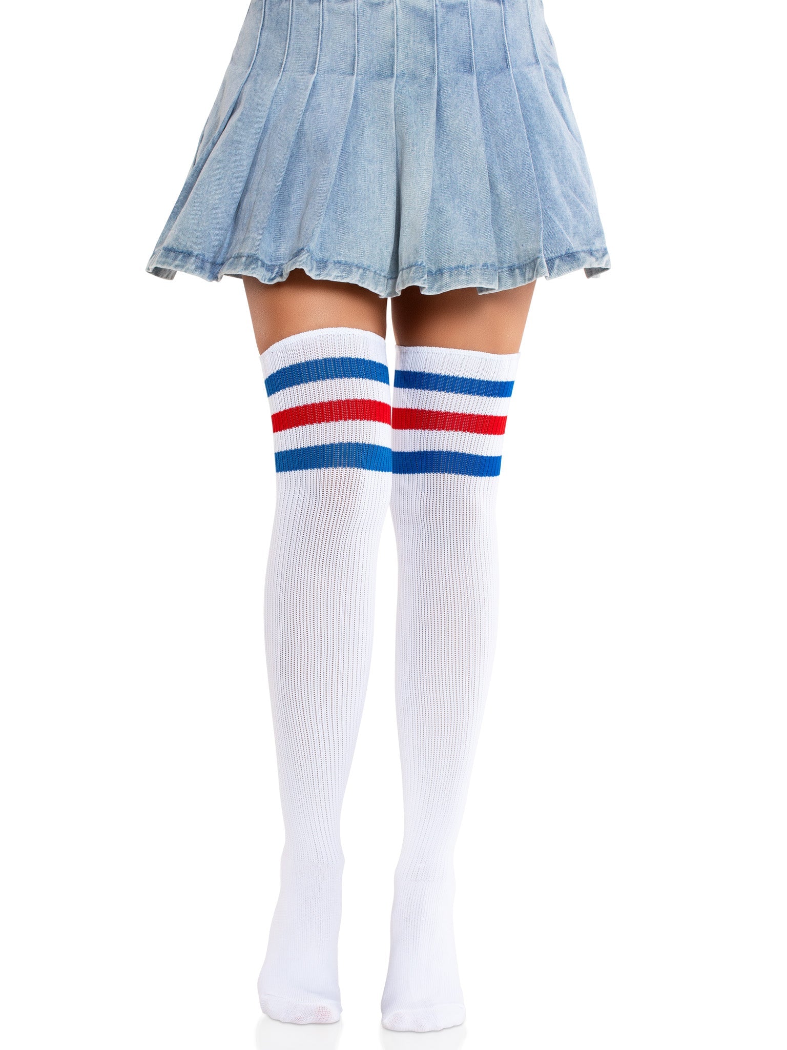 Show off your spirit in the Gina Athletic Thigh High Stockings by Leg Avenue. These fun and flirty athletic socks are ultra comfy and come in a variety of eye-catching colors. Wear them as the ultimate everyday sock!
