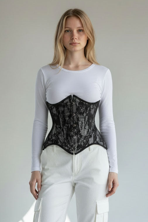 - Under bust corset made of premium satin fabric with black lace fabric overlay