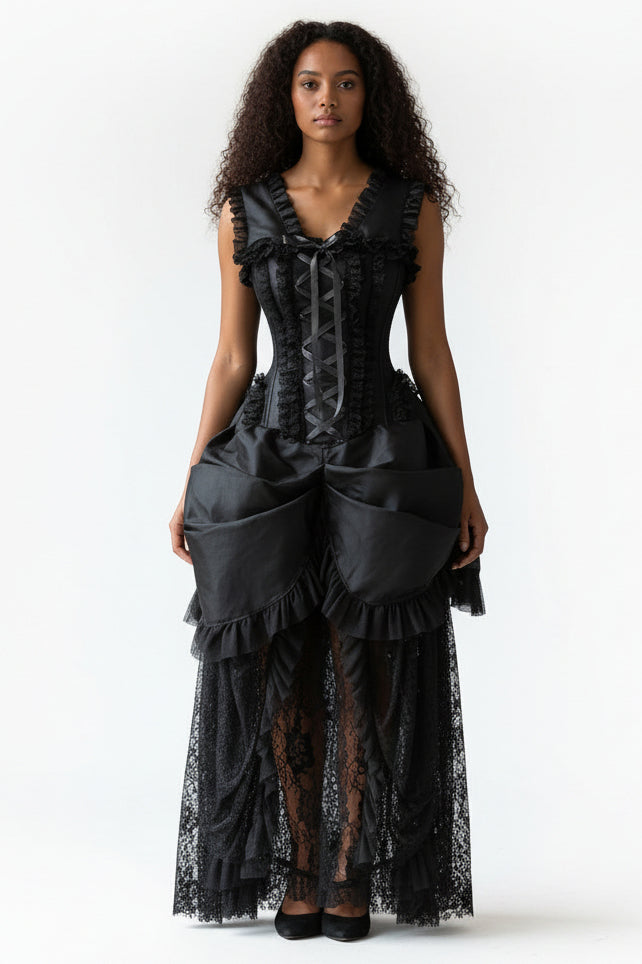 - Overbust corset dress made of high quality brocade and lace fabrics