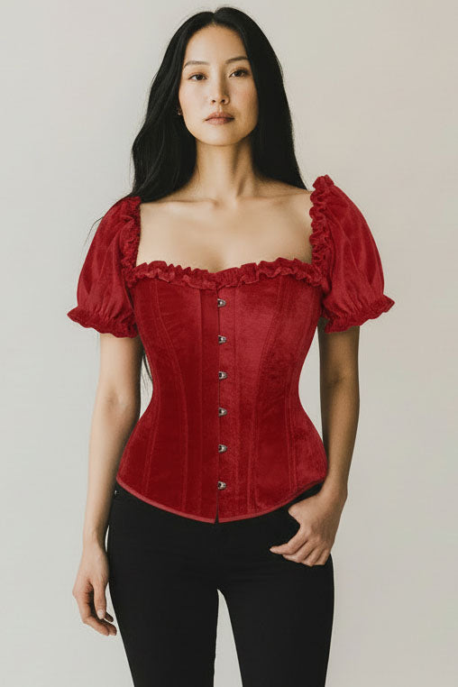 Top Drawer Steel Boned Dark Red Velvet Overbust Corset w/Sleeves