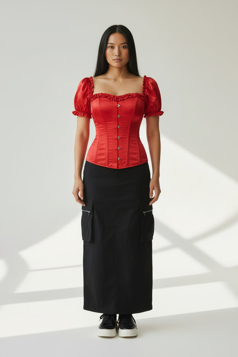 Top Drawer Steel Boned Red Satin Overbust Corset w/Sleeves