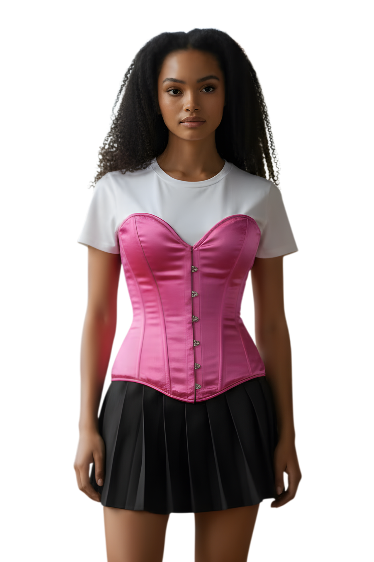 Shine bright in this eye-catching hot pink satin corset. Designed to accentuate your curves, this glossy statement piece features a structured silhouette with flexible acrylic boning for comfortable shaping. The front steel busk closure and dramatic sweetheart neckline make it both glamorous and flattering — perfect for burlesque, clubwear, costume styling, or everyday confidence.